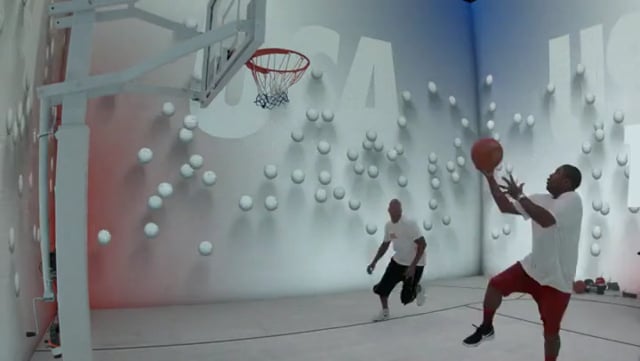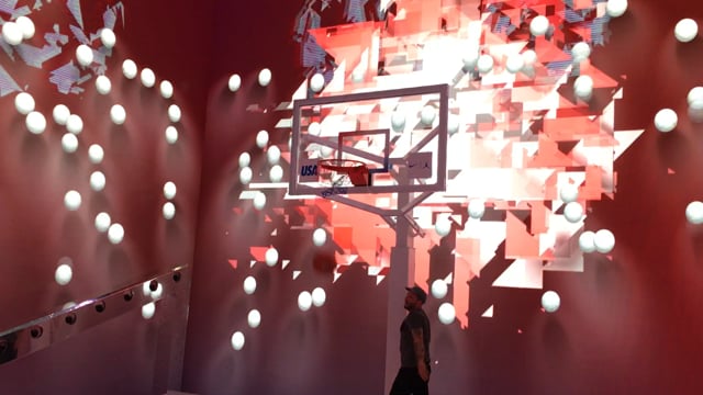 06.21.2016The Nike Air Chamber was a 25' x 25' cube, lined with LED panels to create an immersive basketball environment for a US Olympic basketball team sendoff event. Outfitted with a (4) x 1080p display, a Kinect-powered interface, an impact sensor-rigged basketball hoop, and a custom bullet time HD video camera rig, the Air Chamber delivered a reality-bending basketball experience. My responsibilities were primarily the realtime, spatially-responsive graphics interface, which ran for 6 days straight. This project was a collaboration between Legwork, Hovercraft Studio and several other partners.